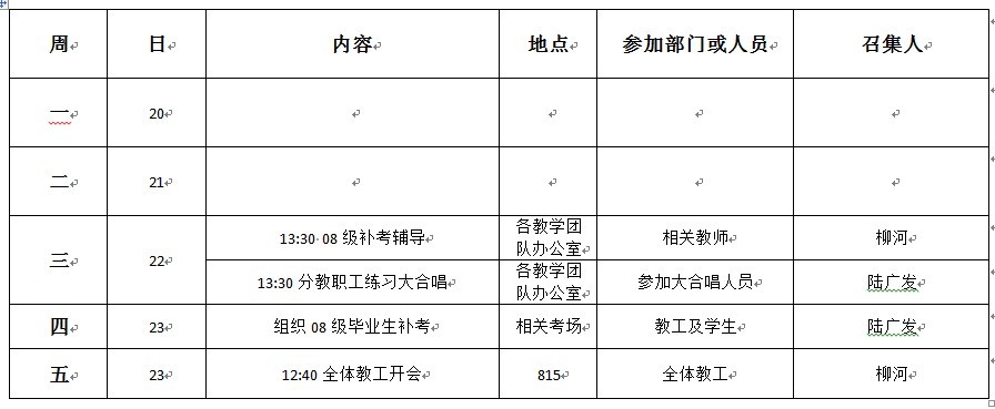 机械工程学院第十七周工作安排表