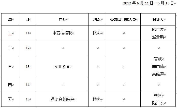 机械分院第十五周重点工作推进表
