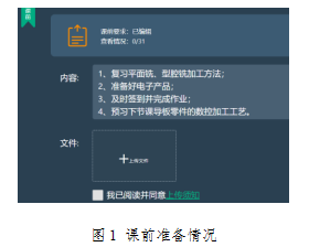 (1)当天学习结束后,就要立即在“智慧职教”平台里布置第二天要学习的内容,以便于学生提前准备出学习材料,如图1所示。