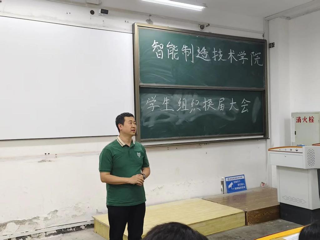 为持续优化我院学生干部队伍结构,充分彰显学生组织在思想引领、服务成长、权益维护中的重要职能,智能制造技术学院于2025年6月4日晚19:00分,在西J302教室召开学生组织换届竞选大会。学院党总支副书记李焕然、团总支书记姜玲老师、团总支副书记(教师)韩玉、辅导员代表邢磊莅临现场指导并参与会议全程。