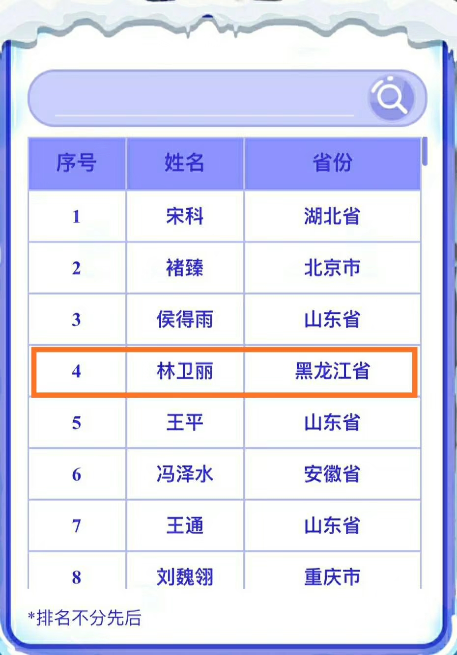 冬梦是2022年冬奥会会徽名称,此次“冬梦大使”活动面向全国共招募600名。在11月19——24日的总决选环节中,林卫丽在抖音视频的“快乐分子”赛道,通过自创的“手势舞”抖音短视频拍摄,以2782个视频点赞量和1.8万次视频播放量的成绩排名,成功当选2019中国联通“冬梦大使”。