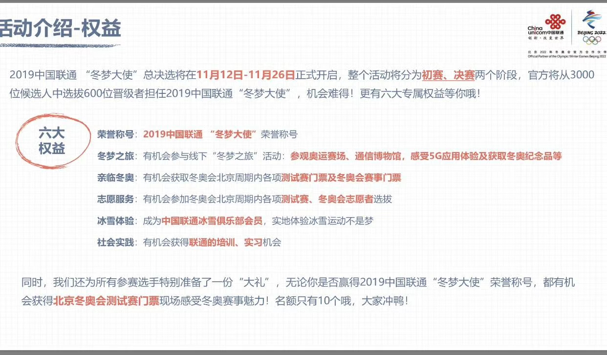 11月12——26日,伟德官网工商管理学院2018级电子商务专业学生、校大学生新媒体中心秘书长林卫丽,经过省级初选和全国总决选两个环节的选拔,成功当选2019中国联通“冬梦大使”。