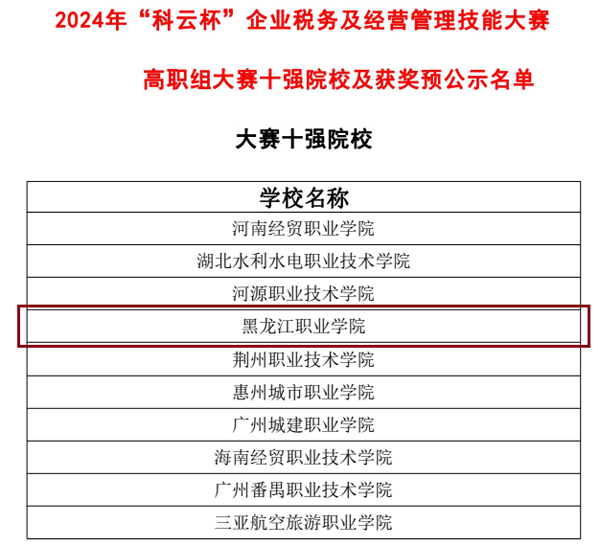 我院获得2024年“科云杯”企业税务及经营管理技能大赛(高职组)“全国十强院校”荣誉称号