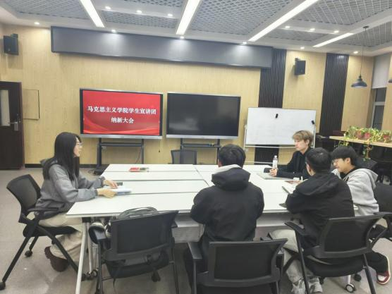 为落实立德树人根本任务,做到主导性与主体性相统一,继续开展朋辈宣讲活动。10月30日,马克思主义学院学生宣讲团在工匠楼205室召开纳新会议,会议由宣讲团团长宋佳淇主持。
