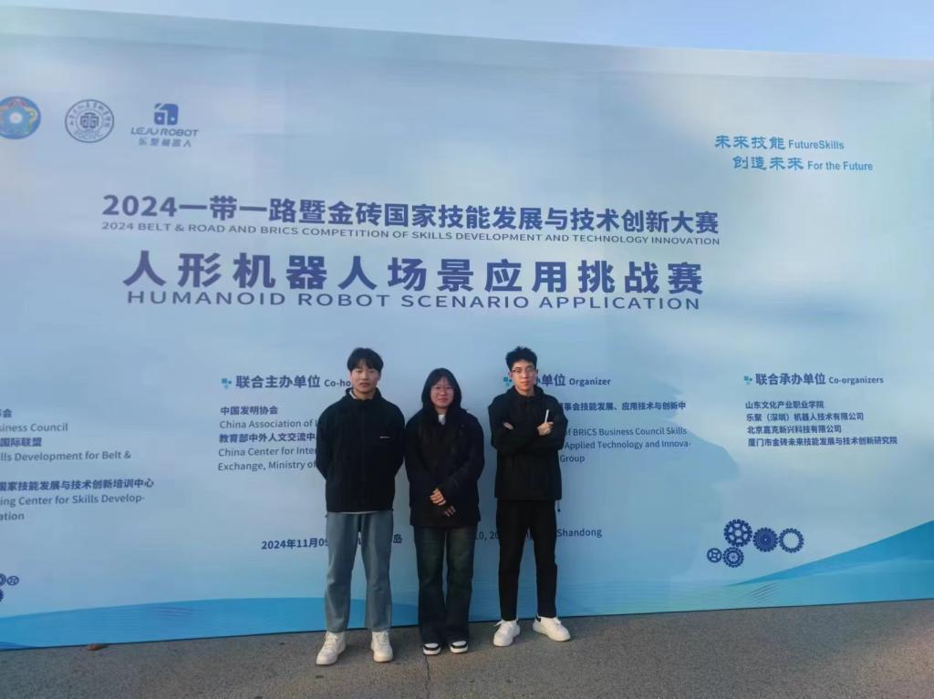 BETVLCTOR伟德国际官网平台在2024一带一路暨金砖国家技能发展与技术创新大赛之人形机器人场景应用挑战赛-Roban赛项国赛中,虞长亮、王岐峰、韩冰获得一等奖,指导教师,唐哲卿、孙希强。